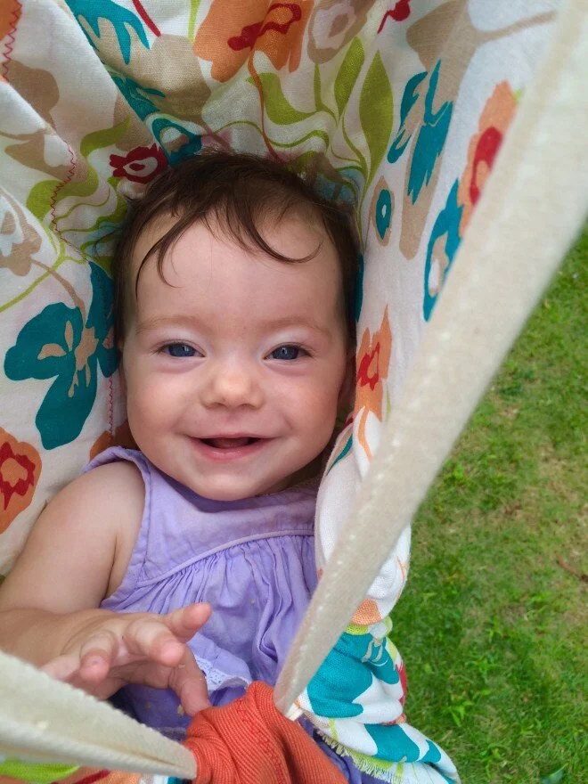 So I’m feeling pretty darn proud of my simple to make, hard to escape, pretty to look at, made from stash, baby swingy thingy!